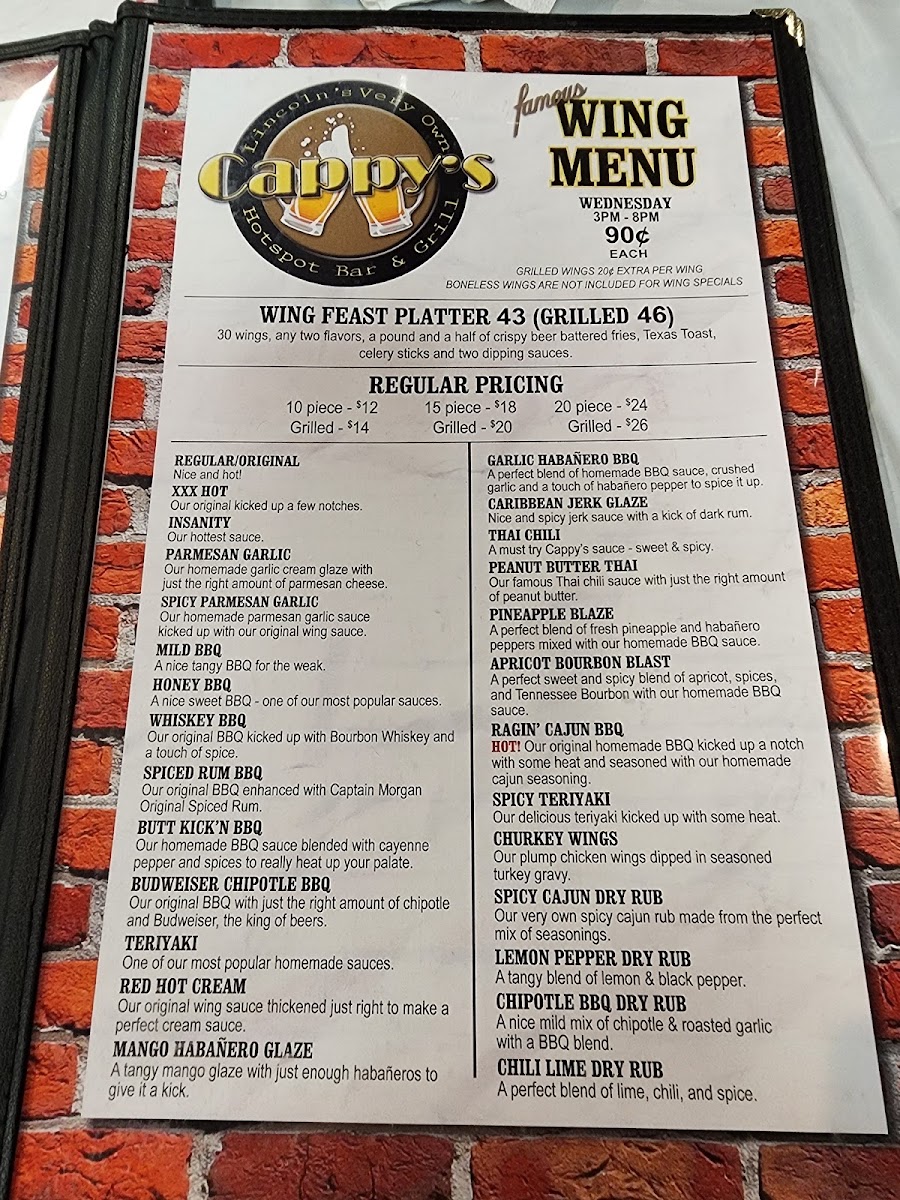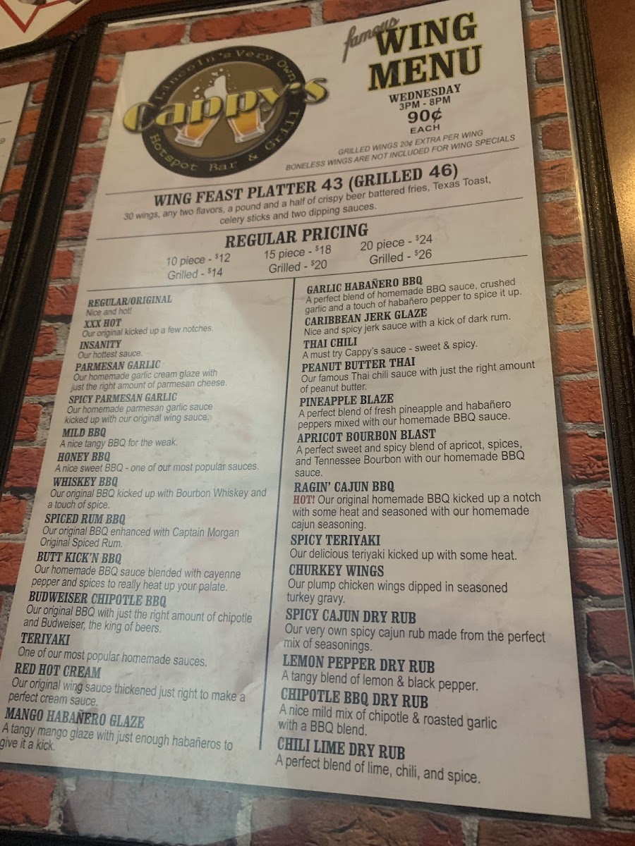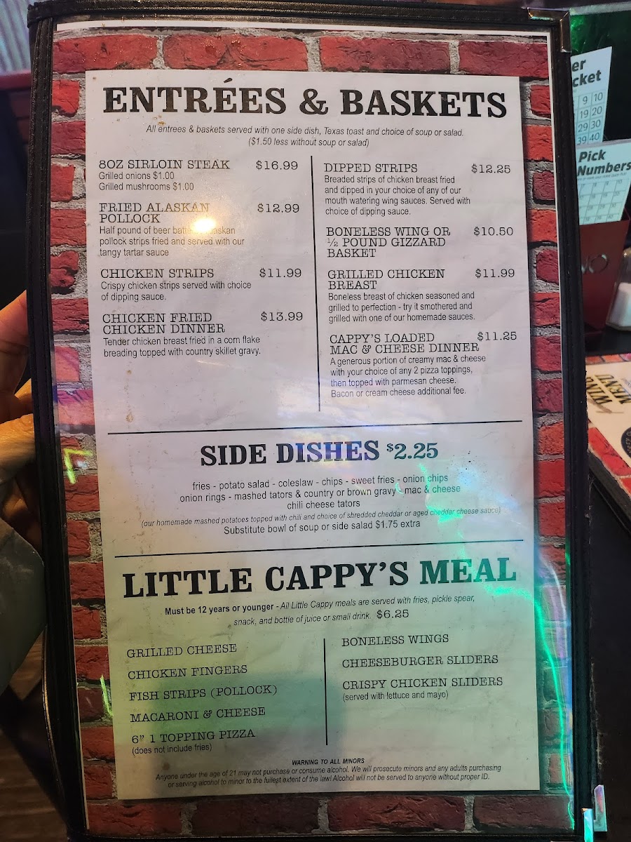 Introducing the Menu at Cappy's Hotspot Bar & Grill